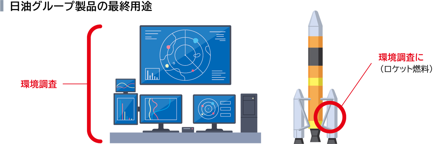 海水や大気の観測のほか、人工衛星による植生・沿岸域変化調査、希少生物の行動追跡調査などは生態系保全の基礎データとして利用され、海洋機器やロケット燃料が生物多様性にも貢献します。