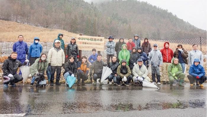 At our Oita Works, as part of our biodiversity conservation initiatives, we endorsed Oita Prefecture’s “Forest Creation with Corporate Participation” program and carried out tree-planting activities in the forests of Yufu City. This initiative involves concluding agreements with landowners and forest cooperatives through mediation by Oita Prefecture, conducting tree planting and thinning, and thereby conserving forest environments and watershed areas.