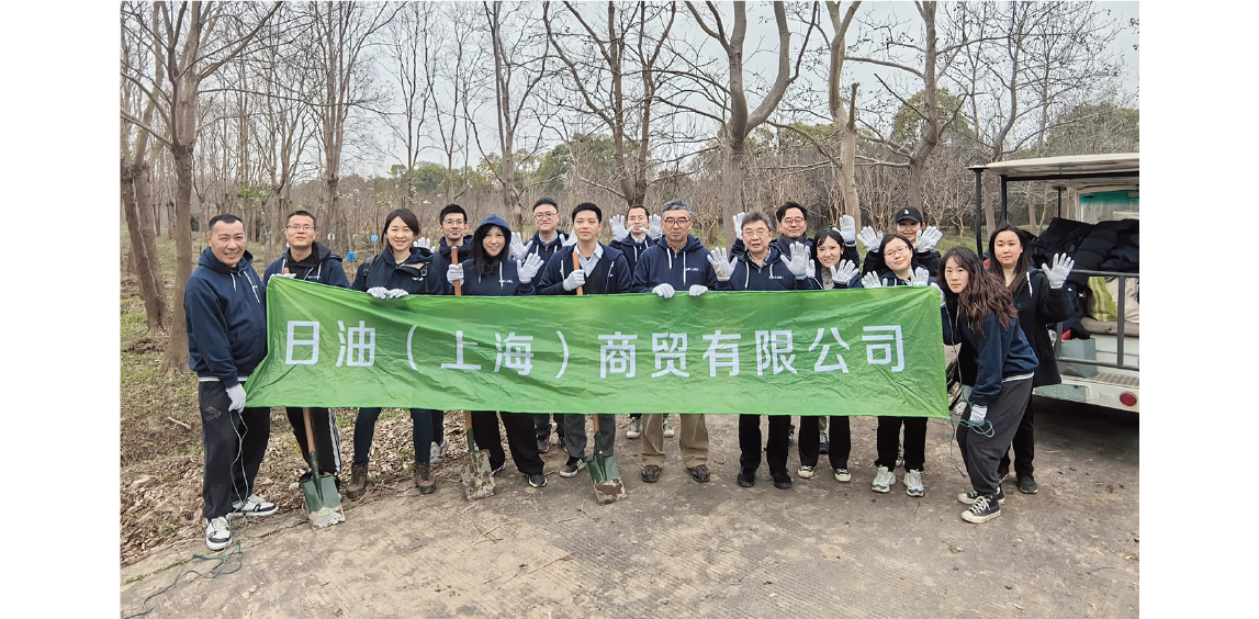 NOF (Shanghai) Co., Ltd. is actively engaged in tree-planting activities with the aim of improving the environment in the Shanghai area and mitigating global warming. In fiscal 2024, 16 employees planted about 20 Japanese ash trees in the Fengxian District of Shanghai. Through these tree-planting activities, we will continue to contribute to the improvement of the global environment.