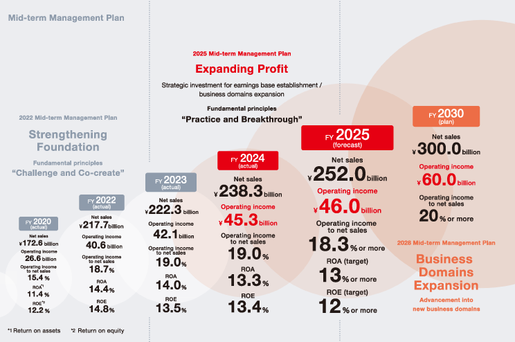 A corporate group that continuously creates new value with the power of chemistry in the three business fields of “Life/Healthcare” , “Environment/Energy” , and “Electronics/IT”, in order to realize a prosperous and sustainable society